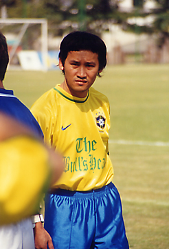 BHB 4 - Warbler 2 ( 3rd December 2000,Kesinee,13.30 k.o. ) The day of the top of the table clash between Warblers and the Brazilians, had already been hyped as the pinnacle event of the casuals calendar. The Bullshead in a slump, for slump in your dictionary see haven't lost a game and/or conceded one goal, and the international mercenaries coming off a series of wins. A full strength Brazilians in their familiar yellow lined up against a full strength Warblers in their newest kit incarnation. This was never going to be for the faint hearted. The early exchanges saw BHB go close and Robbo screaming for a penalty, good to see him getting it out of the way early. Shortly after that 'young boy' gets mugged at left back and a pin point cross sees Robbo stay on his feet to spank one into the top corner. But fortune favours the brave, BHB pressure results in an own goal off Lee's shoulder. Half time 1-1 The second half restarts without the worthless welsh winker. In his half time interview he explains that the effort of not diving at the first sniff of the box!!! has drained his energy. It is unknown at this time whether he meant the Sunday game or his Saturday night. The balance of play is even lots of action, Mini Mitchell races through rounds the keeper and only desperate defending keeps the ball out, Frank fires in the rebound again headed off the line, Breenie misses the follow up. Warblers have a time of pressure. The BHB machine move up against a cross leaving two red shirts at the far post, the yellow hands go up as one, strangely the assistant referee has his hands by his side. (2-1) Instant response BHB, a sweeping move, orchestrated by 'Pants' a dream cross and a diving header far post, (2-2) Vessey stoops to conquer. Great stuff in the middle by 'The Belgian' and that 'Fookin Parkin' shows no end product, Warbler clearly missing an outlet for their midfield men, Nat 'Gentleman of Pleasure' and 'Pants' start to dominate and pass their way through the midfield, from one of these moves BHB get a freekick edge of the box. The situation calls for a left foot screamer to the top corner. 'Pants' steps to the plate, draws back the renowned left peg, and pearolls the ball into the corner under Lees foot. Warbler don't know whether to laugh or cry, BHB whether to laugh or ...well laugh. (3-2) The introduction of 'Tim 7ft tall aussie bloke' tightens the defence and Warblers look likely to snatch a draw building from a firm base. BHB soak up the pressure and counter attack, 'Pants' feeds 'Mitchell' whose pace takes him down the field outstripping the pursuit, only one man can keep up, with the elegant stride pattern reminiscent of Carlton Palmer,Bambi and Roadrunner combined, yours truly provides an outlet, a pacy cross, beats the last defender, one touch, one swivel, one despairing dive courtesy of 'Brooksie' ...Goodnight Warbler pick that one out. Final score BHB 4 -2 Warbler Man of the match:Nick Smart Scorers: BHB Jim Vessey, Nick Smart, Junior Bradshaw;Warblers Lee (o.g.) Robbo and some Thai lad. - Junior